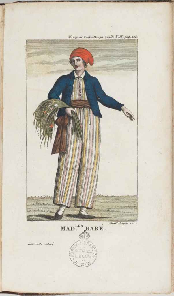 Jeanne nació en La Comell, Francia en 1740 y con 26 años formó parte de la expedición del conde Louis Antoine de Bougainville (1729-1811). Porsupuesto, para subir al barco tuvo que disfrazarse de hombre y utilizó el seudónimo “Jean Baré”. Se alistó como asistente del naturalista de la expedición, Philibert Commerson, poco antes de que los barcos de Bougainville zarparan de Francia. Según el relato de Bougainville, Baret era una experta en botánica.