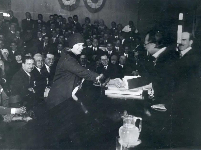 Lía Encalada recibe su diploma de Ingeniera Agrónoma, 1927.